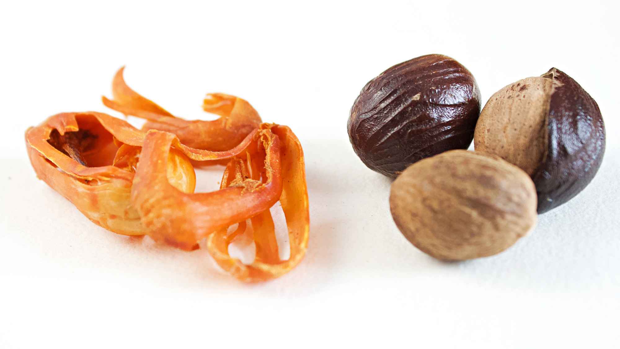 Nutmeg or jaiphal come from a tropical evergreen tree that produces not only nutmeg but also mace (more on that below). It has a woody yet sweet flavour that works well both with sweet and savoury dishes. In Indian cuisine, it is mainly added to spice blends like garam masala and is also used in some sweet dishes like halvas, burfis and puddings.