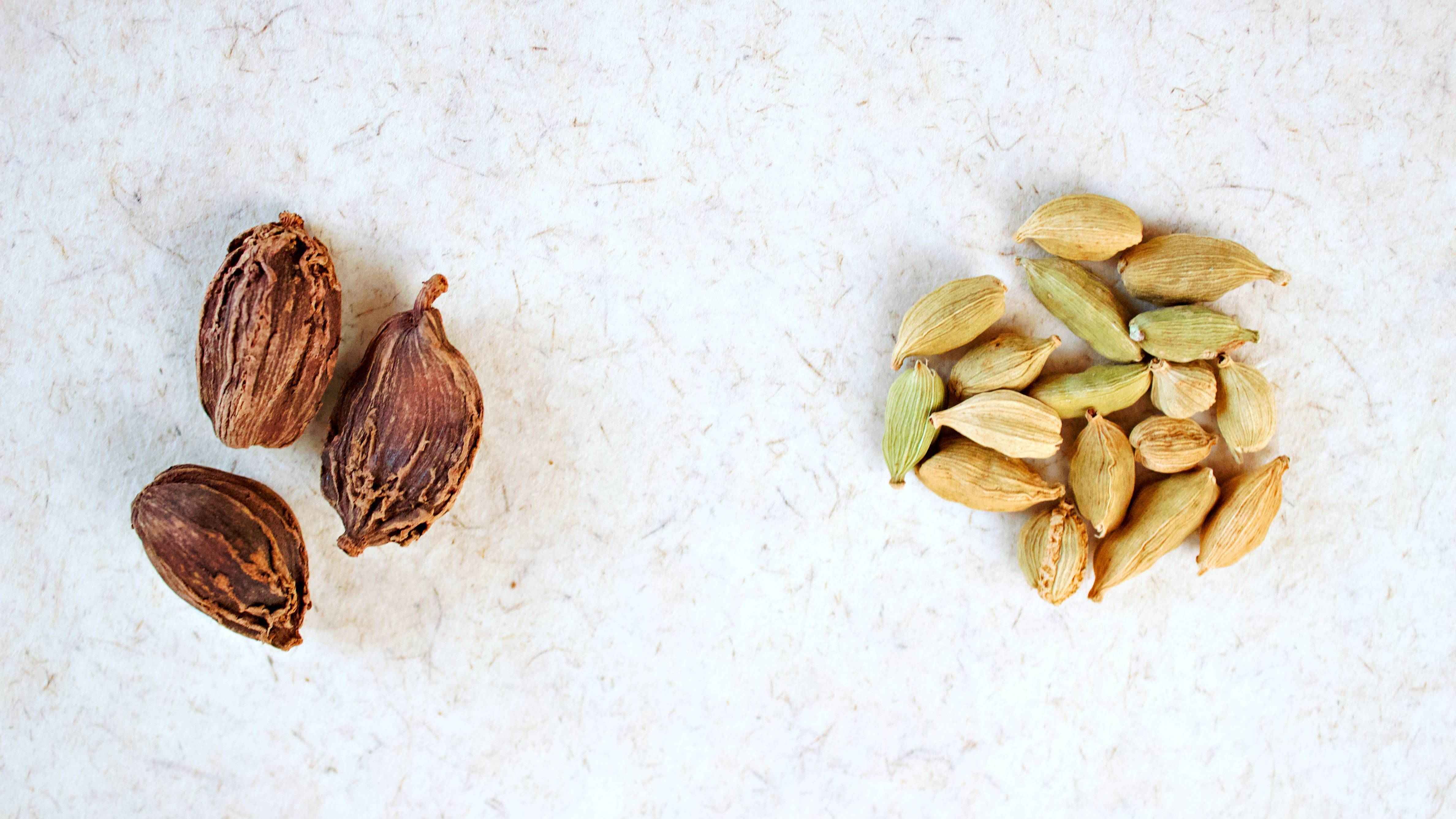 Black cardamom or badi elaichi (big cardamom) is probably not as common as the smaller green variety but is quite essential to North Indian cooking. Black cardamom pods are much larger than the green cardamom that you might already know (thus the Hindi name). Unlike its green cousin, black cardamom is a warming spice with a distinct smoky flavour and is thus used mainly in savoury dishes. It pairs very well with meat dishes, beans and chickpeas and is a key ingredient in garam masala.